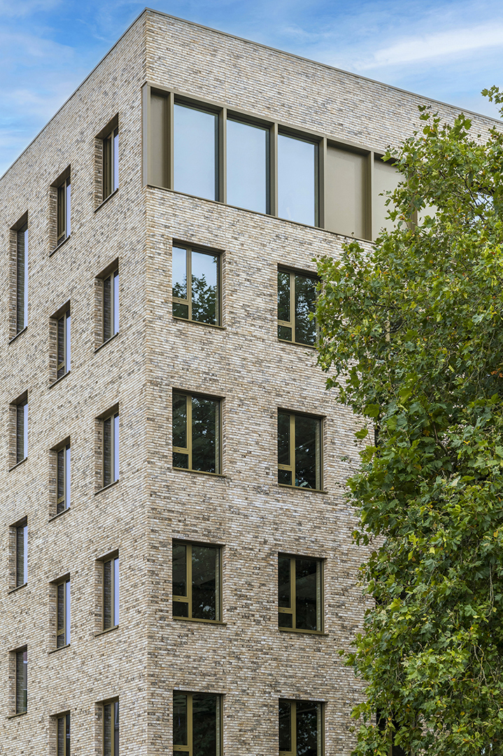 ClickBrick Pure is een droogstapelsysteem dat specifiek ontworpen is voor circulair bouwen. De gevelstenen worden zonder gebruik van lijm of mortel gemonteerd, enkel met behulp van roestvrijstalen clips en spouwankers. Daardoor kunnen de stenen op elk moment worden gedemonteerd zonder schade aan het materiaal of de achterliggende constructie. De gebruikte handvormstenen met horizontale schijnvoeg van 8 mm zorgen voor een traditionele en esthetisch hoogwaardige uitstraling, terwijl de opbouw volledig herbruikbaar blijft.