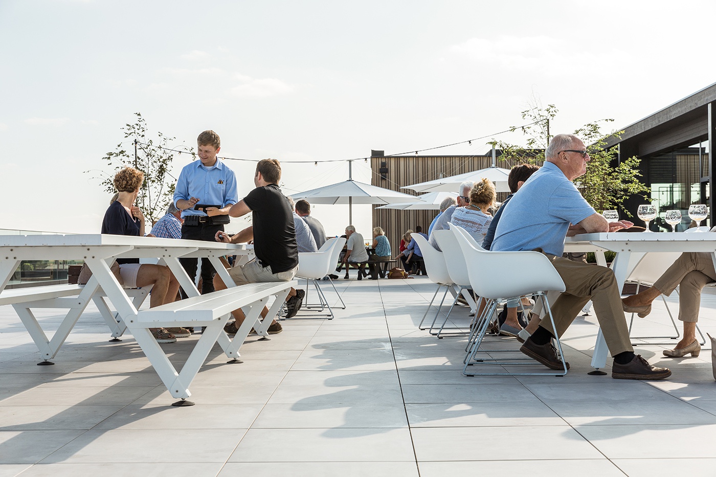 Tot slot eert Extremis de natuur rondom door de kleuren door te trekken naar de inrichting van het terras. De Bistroo’s, vervaardigt uit koperbruin, rietgroen en lichtblauw materiaal, kunnen zo in het landschap opgaan.