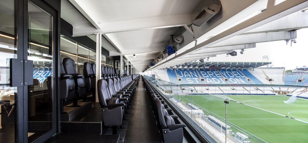Voetbal is sfeer. Om die beleving kracht bij te zetten, investeerde Club Brugge in een nieuwe VIP-zone voor het Jan Breydelstadion. De vernieuwde loges kregen een heel ander concept aangemeten: de seats verhuisden naar een verwarmde buitenruimte. Een glazen gevel scheidt deze buitenruimte van een grote open ruimte. De logehouders hebben hier elk een afgeschermde zone om met hun gasten te tafelen.
