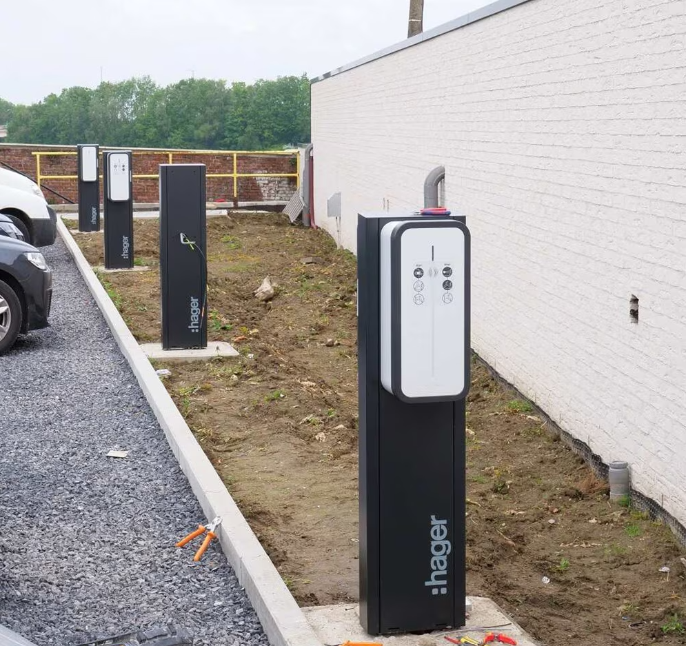 “Alle aansluitingen van het hoofdverdeelsysteem zijn bovendien uitgerust met energiemeters die verbonden zijn met de Agardio.manager-server. Deze server visualiseert het energieverbruik. Bij de ingang van het terrein zijn overigens acht Witty Share-laadpalen van 11KW geplaatst, beheerd door een loadmanagementsysteem dat de laadtijd aanpast aan de beschikbare capaciteit. Ten slotte leverde Hager ook de verdeelborden.”