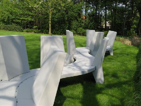 De kracht zit in de eenvoud van het ontwerp. Met slechts 3 elementen heb je toch een oneindige waaier aan combinatiemogelijkheden. Ondanks massaproductie heb je steeds een ontwerp dat specifiek voor een bepaalde ruimte gecombineerd is. De ronde vorm zorgt voor meer interactie tussen de mensen onderling en met de activiteiten van een plein.