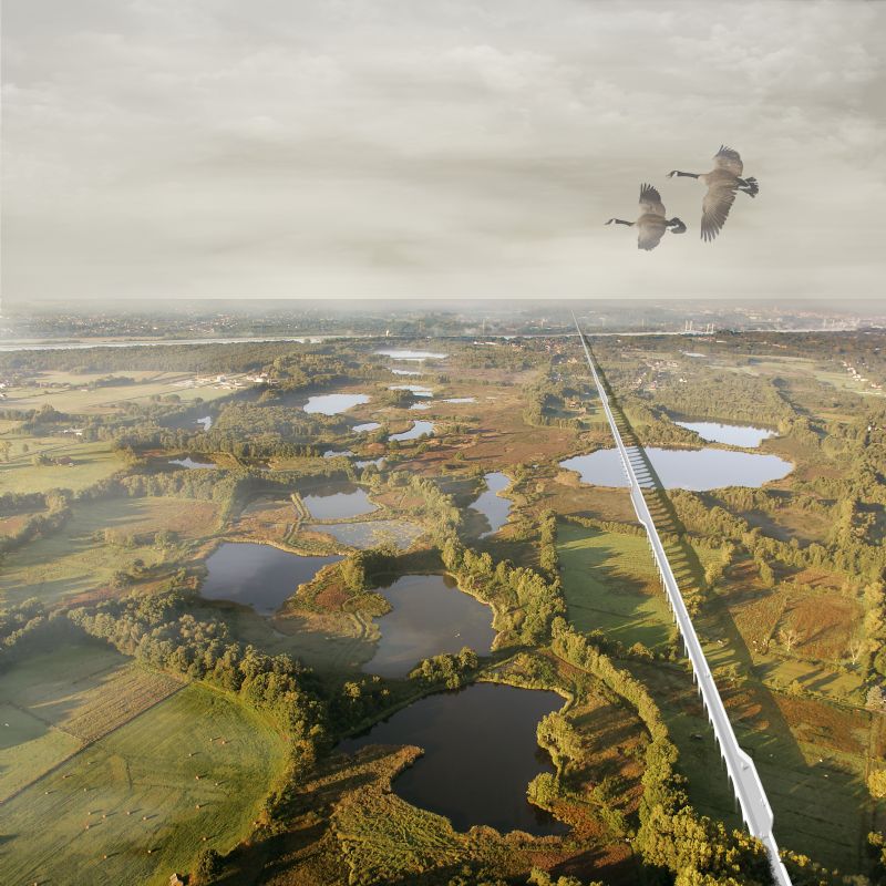 In het voorjaar van 2014 stuurde Architectuurwijzer een oproep uit: Suggereer een interventie die recht doet aan de eigen waarde van de groene zone tussen Hasselt en Genk, meer bepaald de zone tussen de N75 en de N702. C.T. Architects nam deel met een fictief concept – een knappe fiets- en wandelbrug - dat momenteel op heel wat interesse kan rekenen en misschien wel ooit werkelijkheid wordt.
