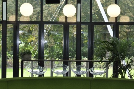 De laatste jaren stond het gebouw er bovendien verwaarloosd bij met zijn vergeelde interieur, de sanseveria’s hinderden het zicht op het park door de ramen. De binnenwanden voor de uitbreiding van de keuken maakten dat de mooie ruimte nog minder kon ervaren worden.
