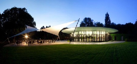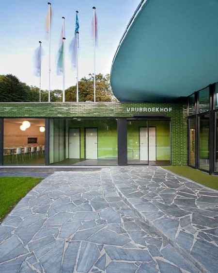 In die tijdsgeest werd het paviljoen Vrijbroekhof indertijd ontworpen. Het cirkelvormig schaaldak op kolommen, de grote glaspartijen en de unieke ligging in het park gaven de tijdsgeest weer.