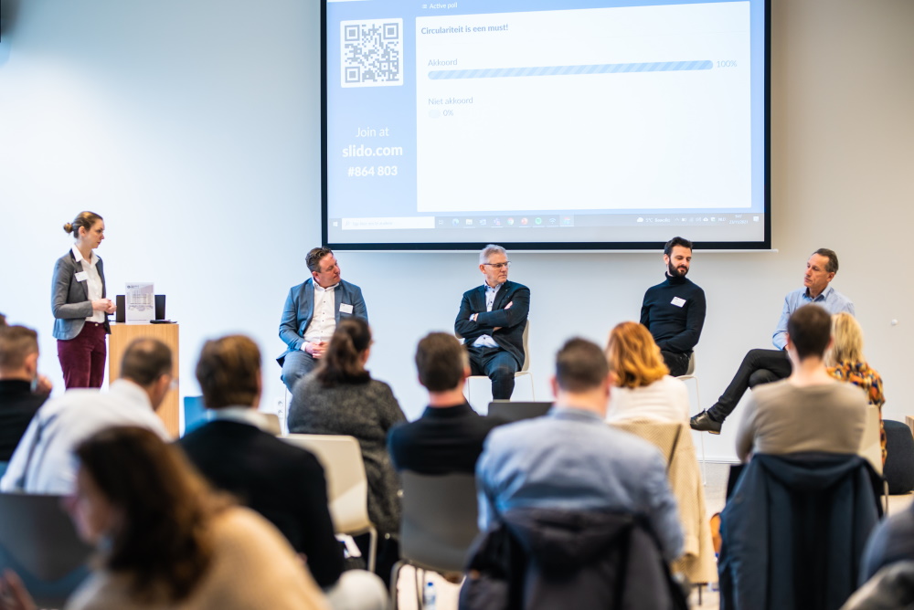 Tijdens het afsluitend panelgesprek werd stilgestaan bij de regelgeving en de betaalbaarheid van circulair bouwen. Een poll wees uit dat 81% van de aanwezigen van mening is dat circulair bouwen pas zal doorbreken als het economisch haalbaar is. De initieel hogere kostprijs vormt nog steeds een van de grootste struikelblokken.