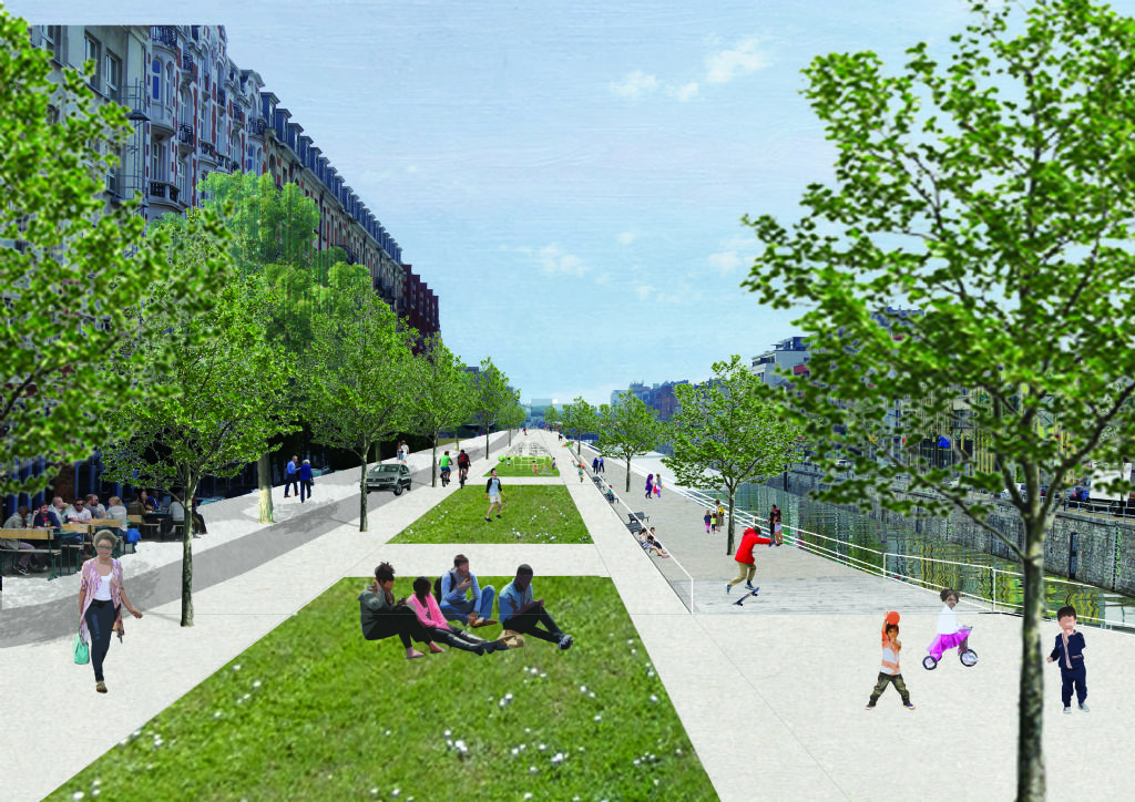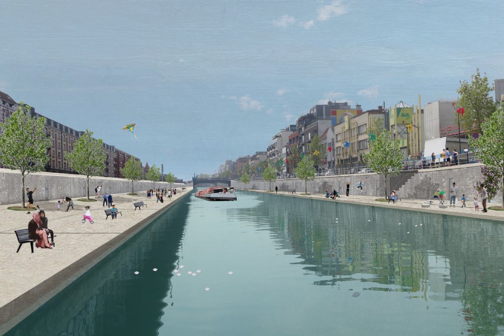 Filter Café Filtré en Architecture Workroom Brussels hebben plan klaar voor groene kanaalzone op kindermaat