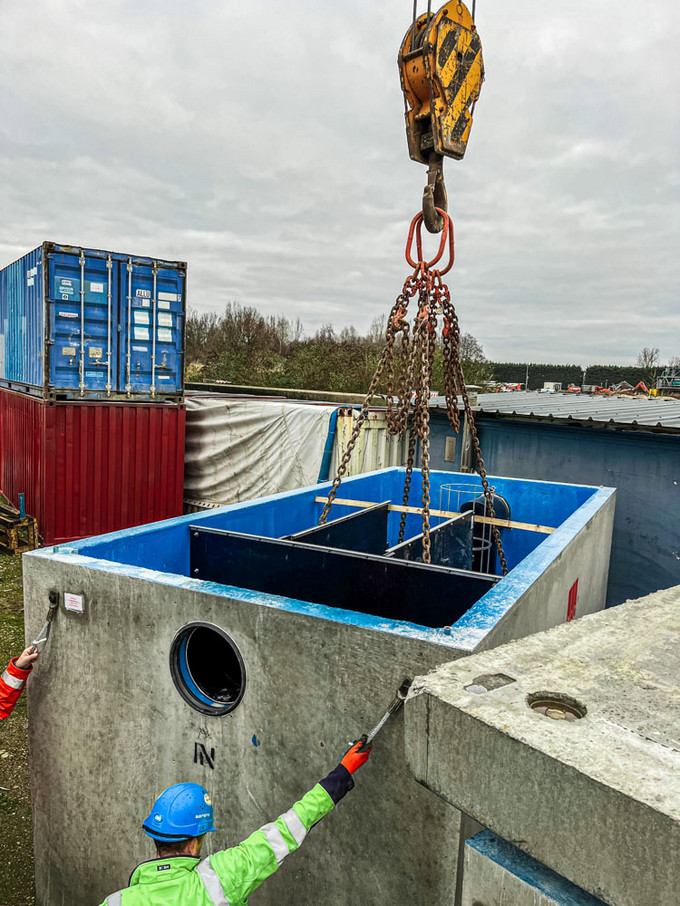 “Aansluitend heeft Aloca de uitvoeringsplannen gemaakt”, vertelt Aloca-zaakvoerder Kurt Francken. “De keuze voor de producten van ACO lag voor ons voor de hand. In 2021 waren wij één van de grootste afnemers van KWS-installaties van ACO en al sinds 2009 installeren we de producten van ACO. De grootste uitdaging in dit project was het stabiel uitvoeren van de graafwerken, bemoeilijkt omwille van grondwaterverlaging, en het manipuleren van het gewicht van de afscheiders. De hijswerken van Sarens zelf kwamen hierbij uiteraard goed van pas. Het project is volledig gelopen zoals gepland.”