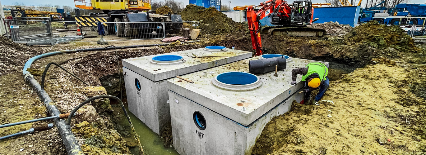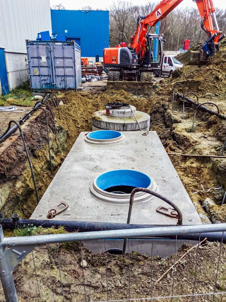 Het is niet de eerste Oleosmart die bij Sarens geplaatst werd. Rony Verbuyst: “In 2014 werd al een Oleosmart geïnstalleerd en dankzij de prima resultaten lag de keuze dan ook voor de hand. Op de site zijn er heel wat fijn stof, minerale oliën en vetten die afgevoerd zullen worden naar de olieafscheiders en in totaal zal zo’n 300 l/s extra behandeld worden. Het merendeel van dit hemelwater zou in het oppervlaktewater terechtkomen waardoor onze voorkeur dus uitging naar een systeem met volledige behandeling, zonder bypass. Omwille van de zware kranen die al op de site staan opgesteld, bleken onze betonnen kuipen, die steeds SLW60 gekeurd zijn, de ideale oplossing.”