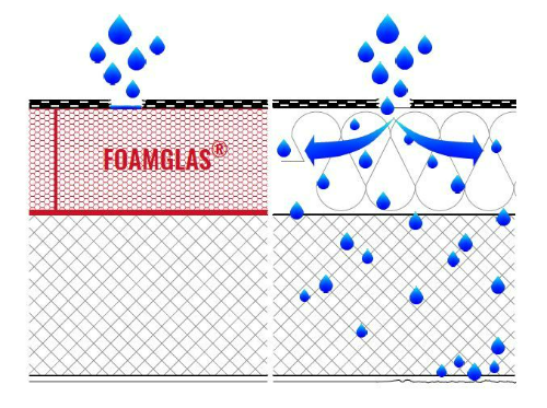 FOAMGLAS®-isolatie neemt de functie van de waterdichting over. Geen klein voordeel als u bedenkt dat op deze manier: