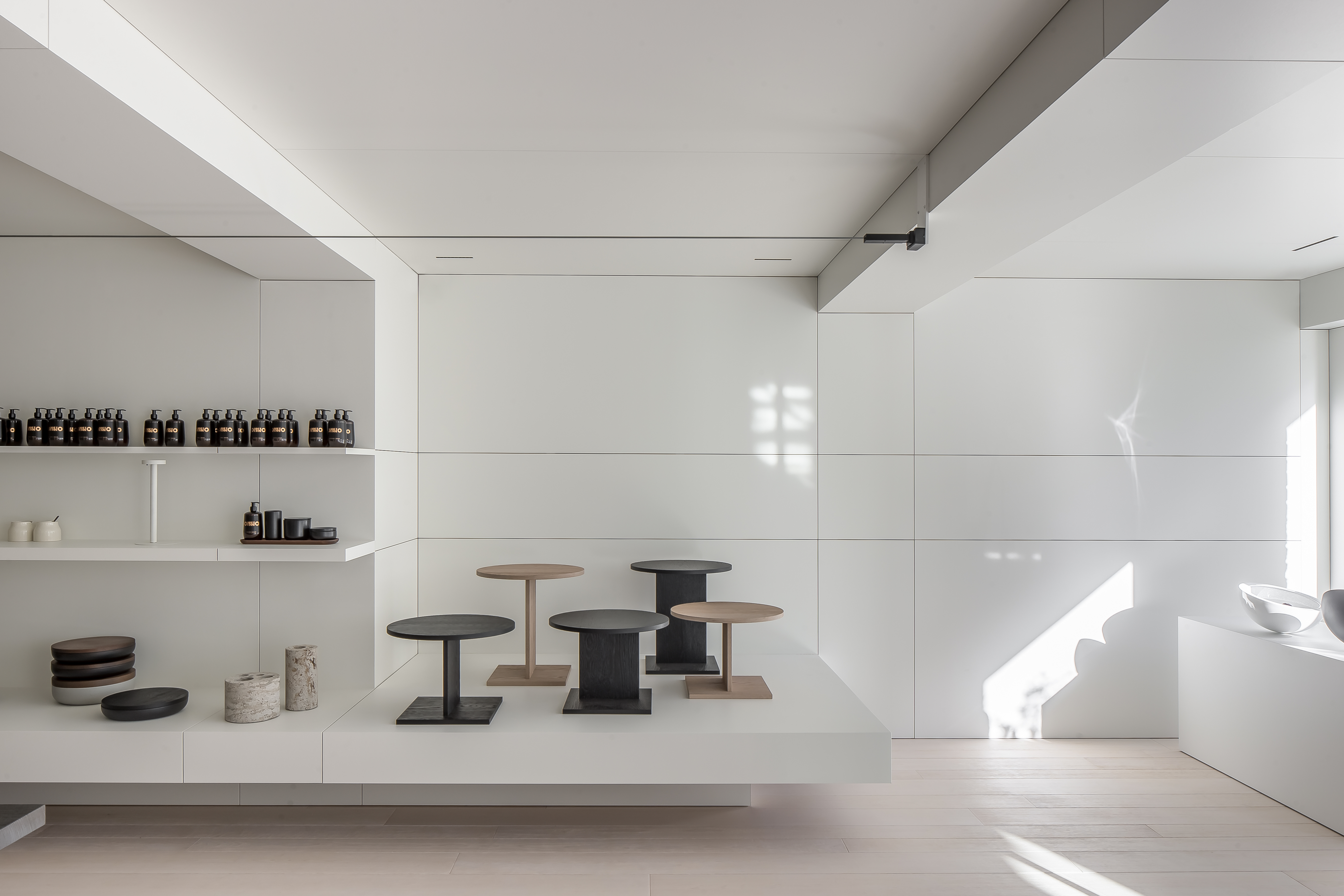 Ook het interieur van de conceptstore an sich inspireert. Om de shop- en woonbeleving maximaal tot haar recht te laten komen, werd het winkelpand gestript en opnieuw ingekleed. Denk muren geverfd in lichte kleuren, een materialenmix van natuursteen en hout, zwevende balken en banken…: op een beperkte oppervlakte van 110 m² winkelruimte is Minus erin geslaagd zijn signatuur neer te zetten. De inrichting straalt de rust en sereniteit uit die uit alle realisaties van Minus spreekt. Het gebruik van lichte basiskleuren is een knipoog naar de lichtrijke kustomgeving en laat kleurrijke objecten bovendien volledig tot hun recht komen. Het team koos bewust voor een pand in Nieuwpoort - het nieuwe Knokke - én zo ook een nieuwe, gegeerde hotspot aan zee. Nieuwpoort is een fijne badstad waar je ook op zondag kan shoppen.
