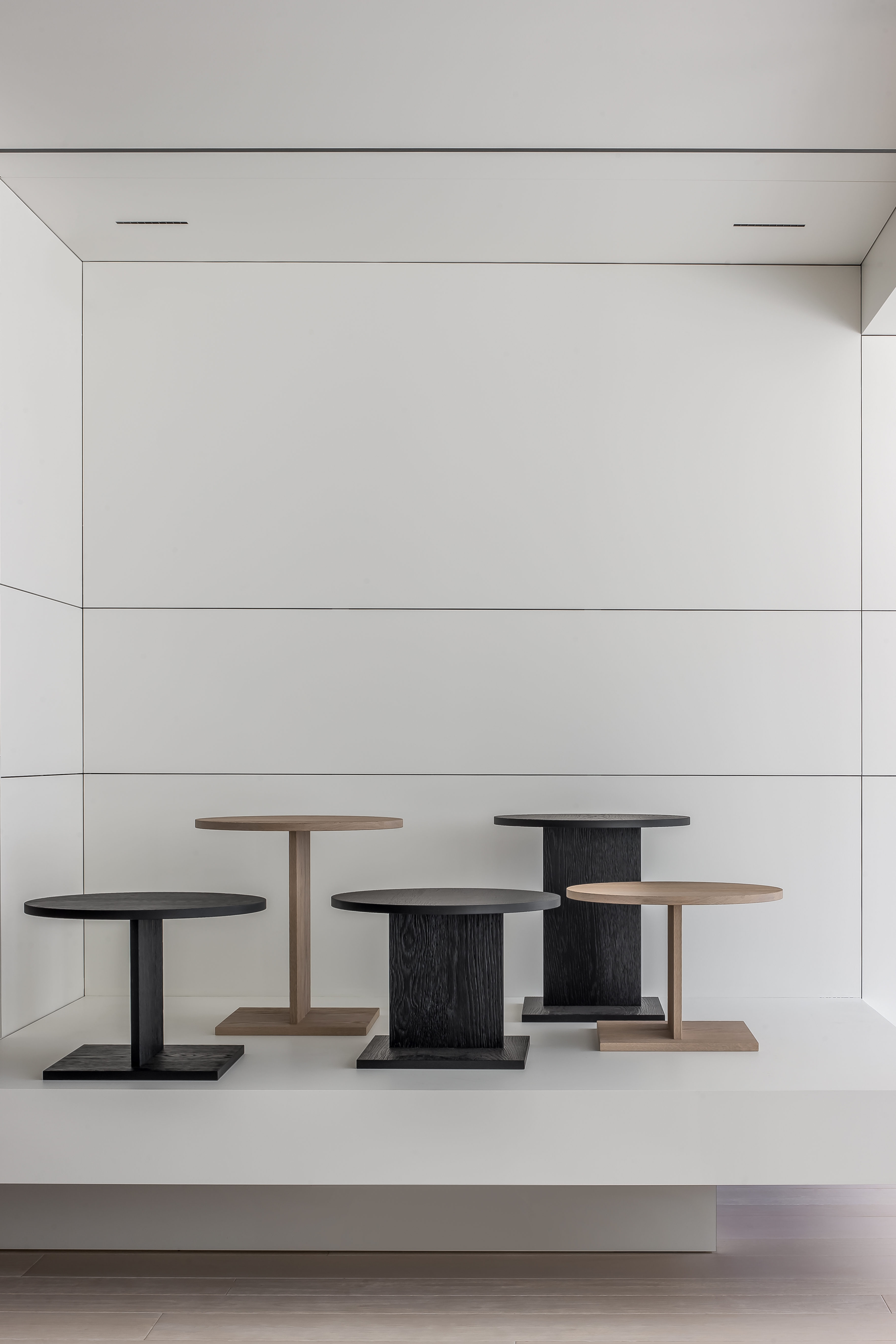 - Minus tafel rond en vierkant (35 cm eik massief, naturel beits 540 euro - 35 cm eik massiek, zwart lak 605 euro - 50 cm eik massief, naturel beits 555 euro - 50 cm eik massief, zwart lak 625 euro)