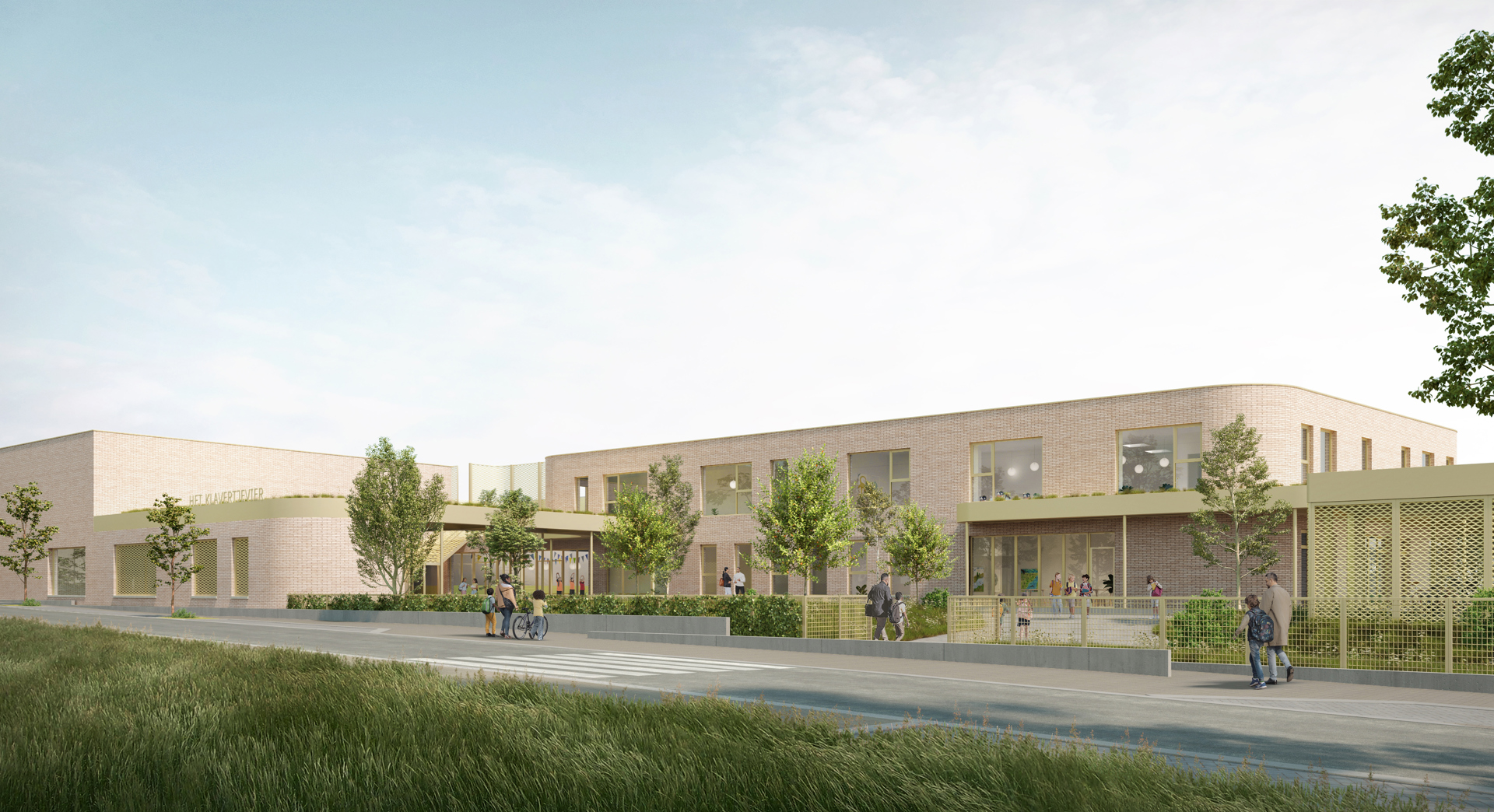 In Knesselare is recent de eerste steen gelegd van de nieuwe GO! basisschool Het Klavertje Vier, een ontwerp van evr-architecten. De Gentse ontwerpers realiseren het project samen met Aurora Scholen, dat instaat voor de bouw, financiering en het onderhoud, in een consortium met investeerders EPICo en Rebel, aannemers Democo en Van Roey en onderhoudspartner The Energy Circle. De nieuwe schoolsite krijgt een duidelijke hoofdtoegang aan de Aalterseweg en een sportcluster die ook buiten de schooluren autonoom kan functioneren.