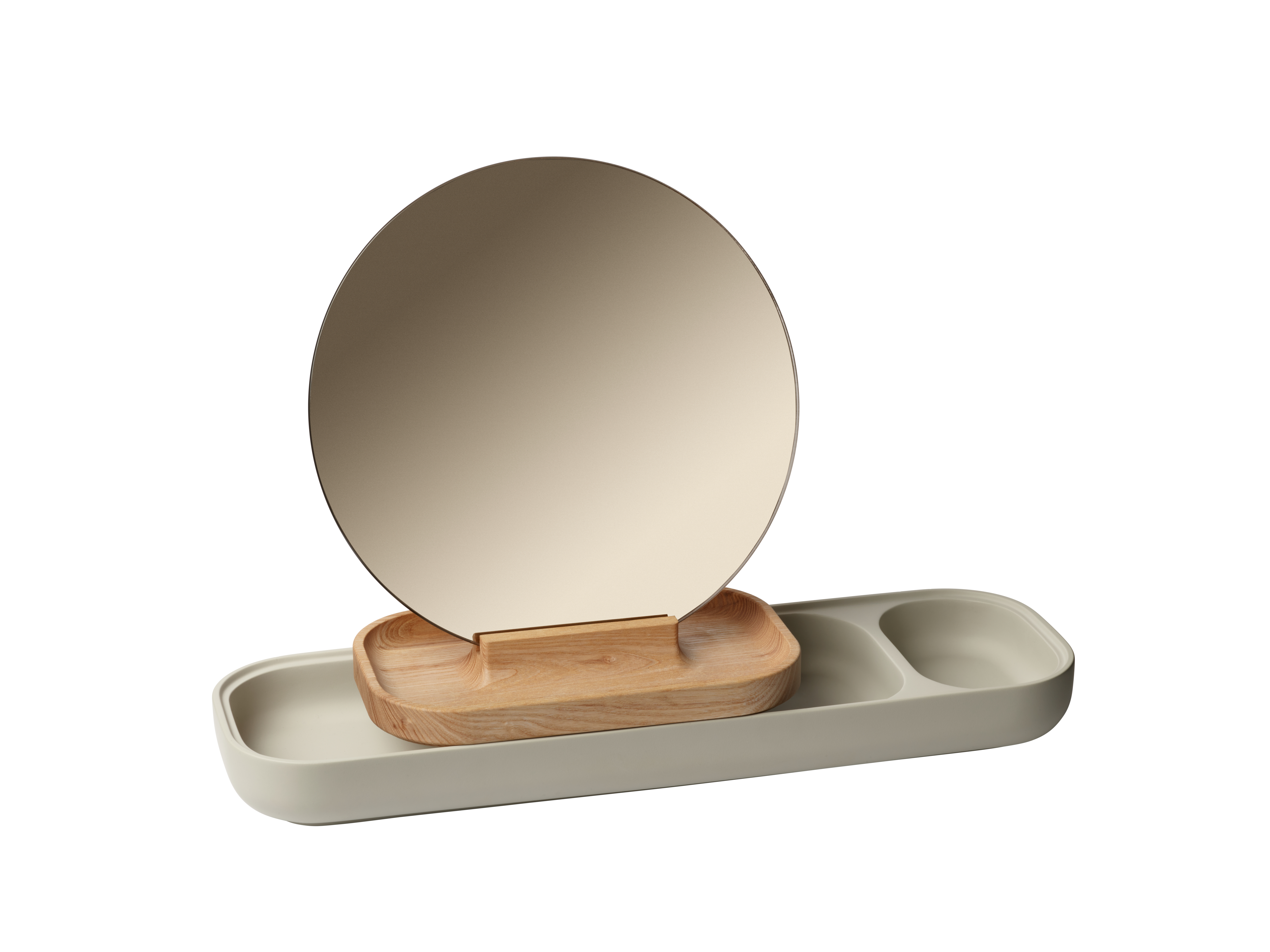 Slide, een ontwerp van Karin Nakamura, is een sculpturaal opbergmeubel met een eenvoudige, ingetogen stijl. Hij wordt gelanceerd als het nieuwste accessoire uit de collectie van Fritz Hansen. Slide creëert een evenwicht tussen een klein opbergmeubel en prachtige sculpturale look. Het meubel is gemaakt van eenvoudige materialen zoals rookglas, handgemaakt beton, kurk en essenhout. Men zou kunnen zeggen dat de kleine spiegel en het opbergmeubel tot de klassieke shibui-stijl behoren - de Japanse term voor objecten die aantrekkelijk zijn omwille van hun soberheid en ingetogen karakter.
