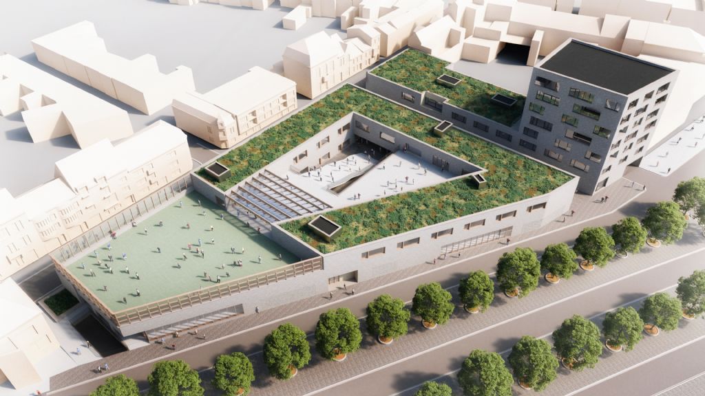 De Gazometersite wordt opgedeeld in drie kernzones. Ter hoogte van het bestaande gebouw van de jeugddienst worden een fuifzaal, jeugdhuis, repetitieruimtes, jeugd- en uitleendienst gegroepeerd tot een ‘jongerencampus’. “Aansluitend wordt, centraal op de site, een lagere school ingeplant”, licht Kris Huysmans van Architecten Achtergael toe. “Aan de zuidzijde worden verschillende diensten rond het domein van het jonge kind gegroepeerd tot een ‘welzijnscampus’ die samen met het erboven gestapelde woonprogramma aansluit op de naburige woon- en dienstenzone en het omsloten groengebied. Ondergronds spreidt de publieke parking zich over twee lagen.”