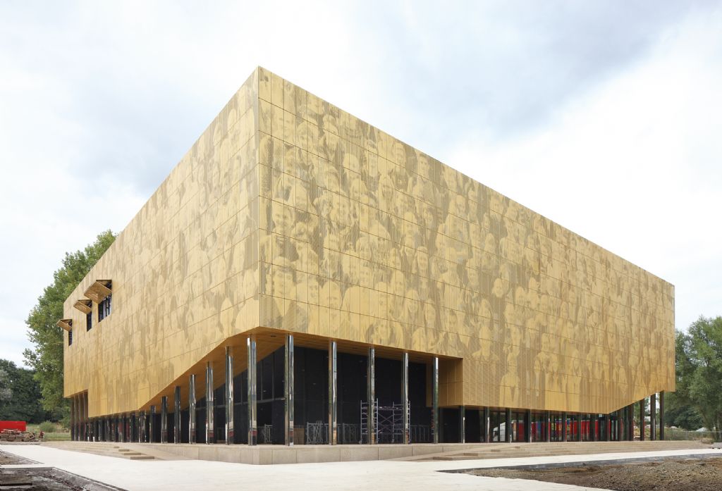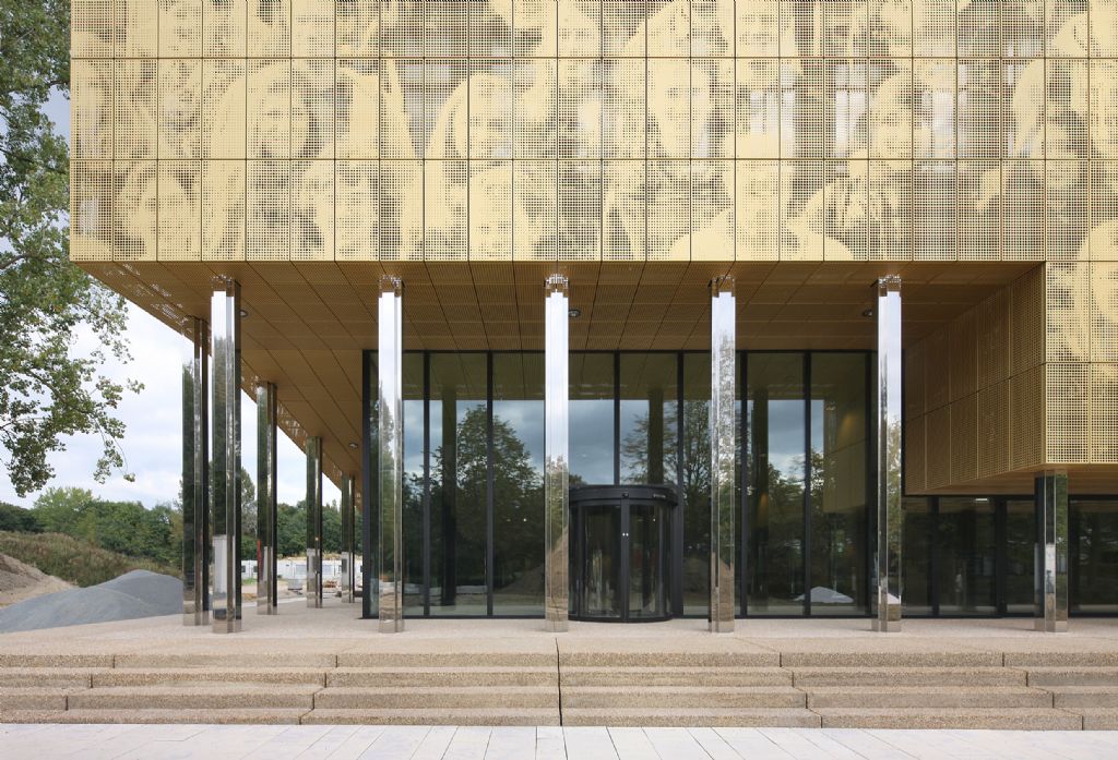 Voor de kunstintegratie werd beroep gedaan op kunstenaar Perry Roberts (UK). Op de gevel werd een foto van studenten en docenten geponst in de gouden aluminium gevelplaten. De afbeelding refereert naar de traditionele klasfoto’s en werd gerasterd in dots met 5 verschillende diameters. Door gebruik van de CNC-techniek kan op eenvoudige wijze elk paneel uniek worden gemaakt. Op korte afstand krijgt men een abstrahering van het beeld, slechts op een grotere afstand wordt het beeld leesbaar.