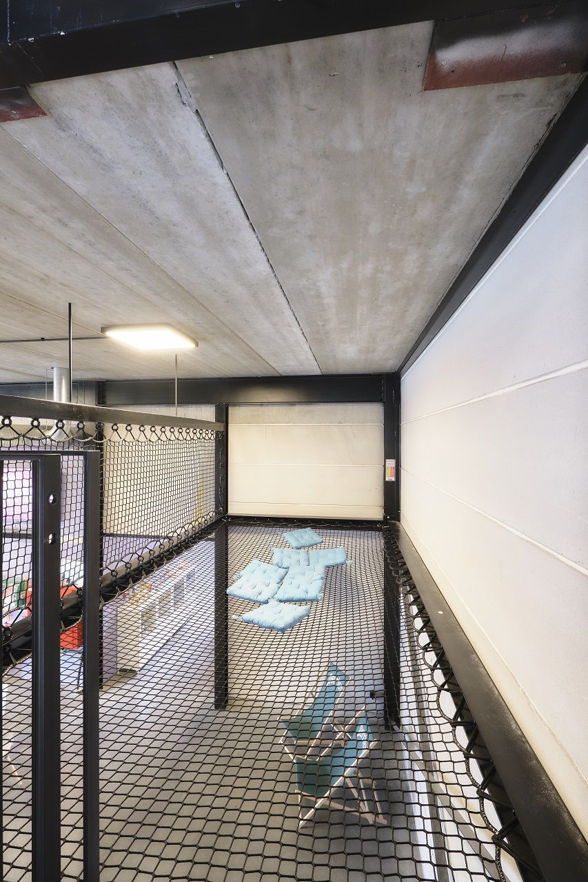 Patrick De Vos, projectverantwoordelijke van Xella, onderstreept de logische keuze voor Hebel. "Hebel is net zoals Ytong opgebouwd uit cellenbeton en dus één van de meest doeltreffende materialen op vlak van brandveiligheid. Cellenbeton is op zich namelijk onbrandbaar. Daarenboven beschikt Hebel over zeer goede akoestische eigenschappen, zeker in vergelijking met een binnenafwerking in beton of metaal. De wandopbouw die hier werd toegepast is een sandwichpaneel van 8 cm dikte gemonteerd op een 15 cm dik gevelelement van Hebel.