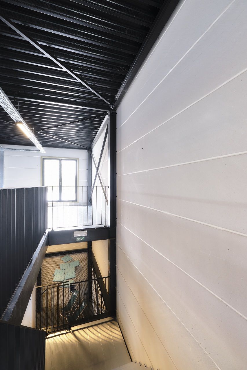 Inge Desmet, architect van het project, vervolledigt de technische en conceptuele voordelen van cellenbeton: "Op vlak van inertie scoort cellenbeton beter dan bijvoorbeeld beton of metaal. Dit betekent dat cellenbeton zeer goed warmte of koude kan opnemen om het vervolgens vertraagd vrij te geven, wat een natuurlijke manier is om de binnentemperatuur in een gebouw te regelen. Cellenbeton is als materiaal ook dampopen, waardoor het mee de luchtvochtigheid in een ruimte in evenwicht brengt, niet onbelangrijk in een dansstudio waar intens aan sport gedaan wordt."