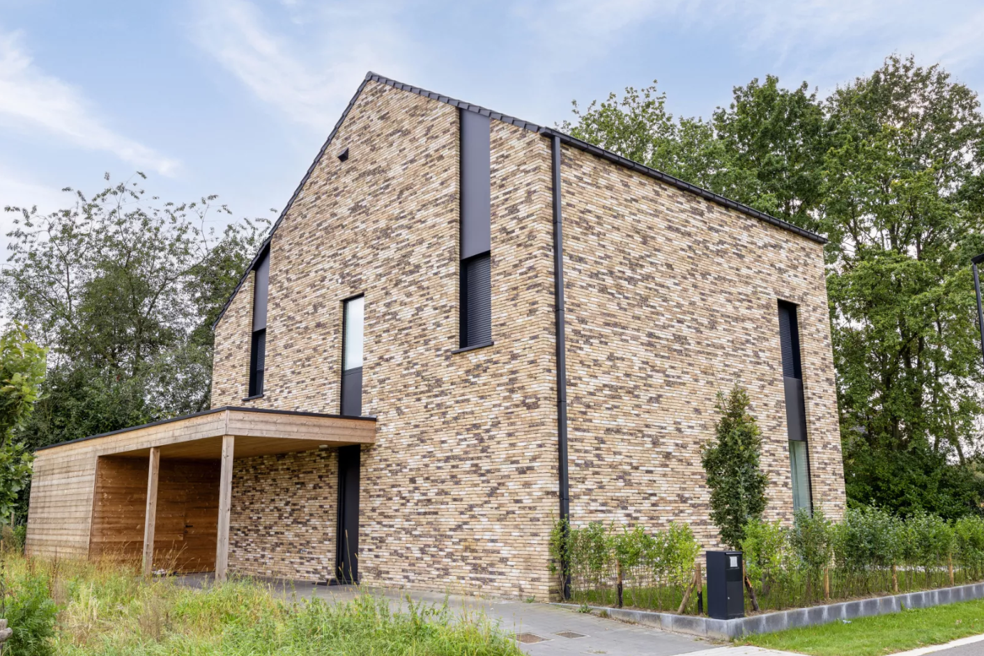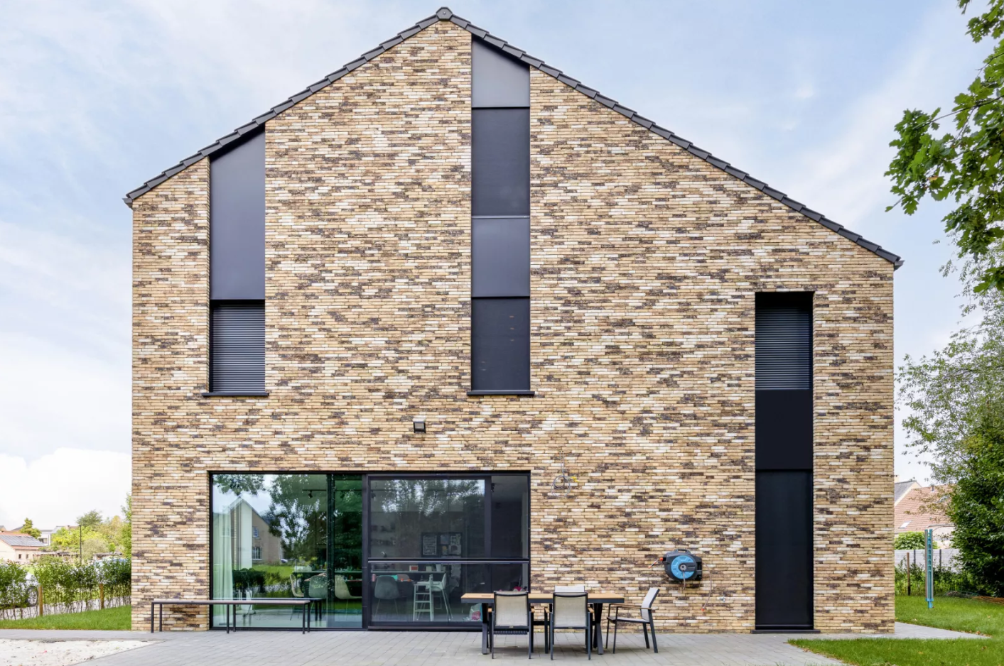 Bij een nieuwbouw in Dessel voorzag Wilms een combinatie van ZipX®Zero screens en ShutterX® rolluiken. Om de connectie tussen de leefruimte en de tuin te bewaren werden de ramen van het gelijkvloers achteraan voorzien van screens. De ramen op de bovenliggende verdiepingen kregen ingebouwde rolluiken om daar volledige verduistering te kunnen bieden. De systemen werden visueel mooi geïntegreerd in verticale zwarte stroken.