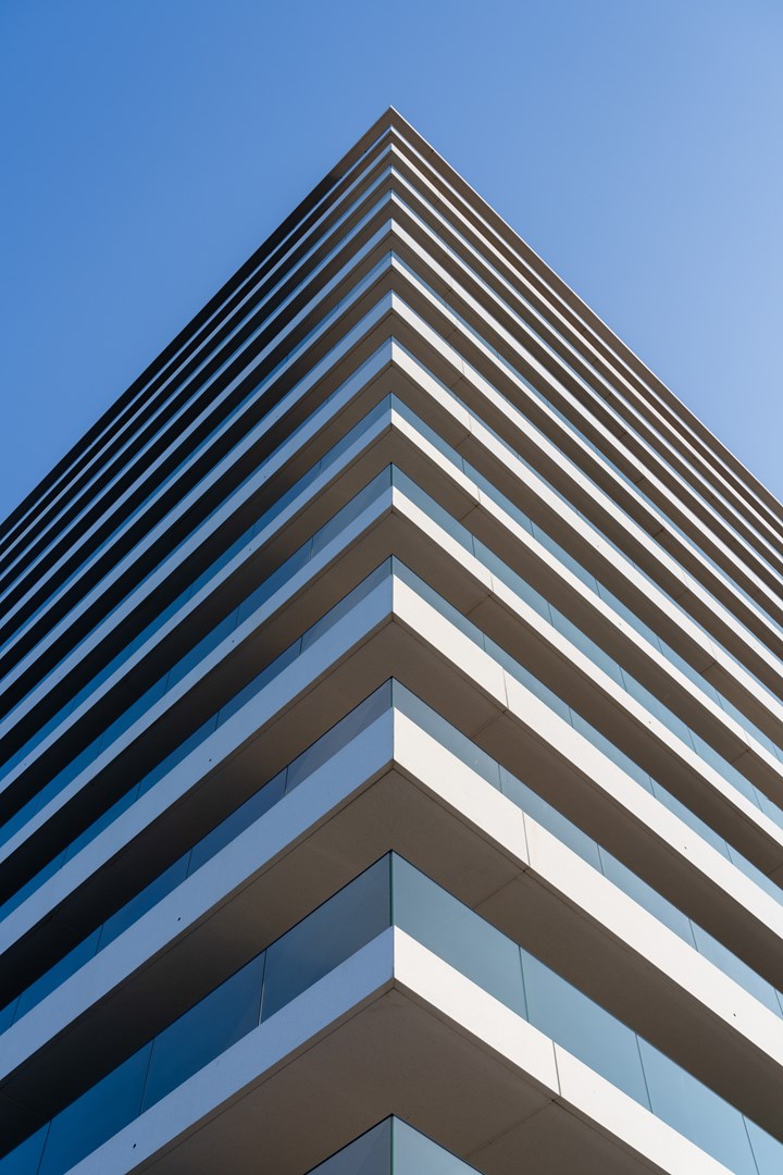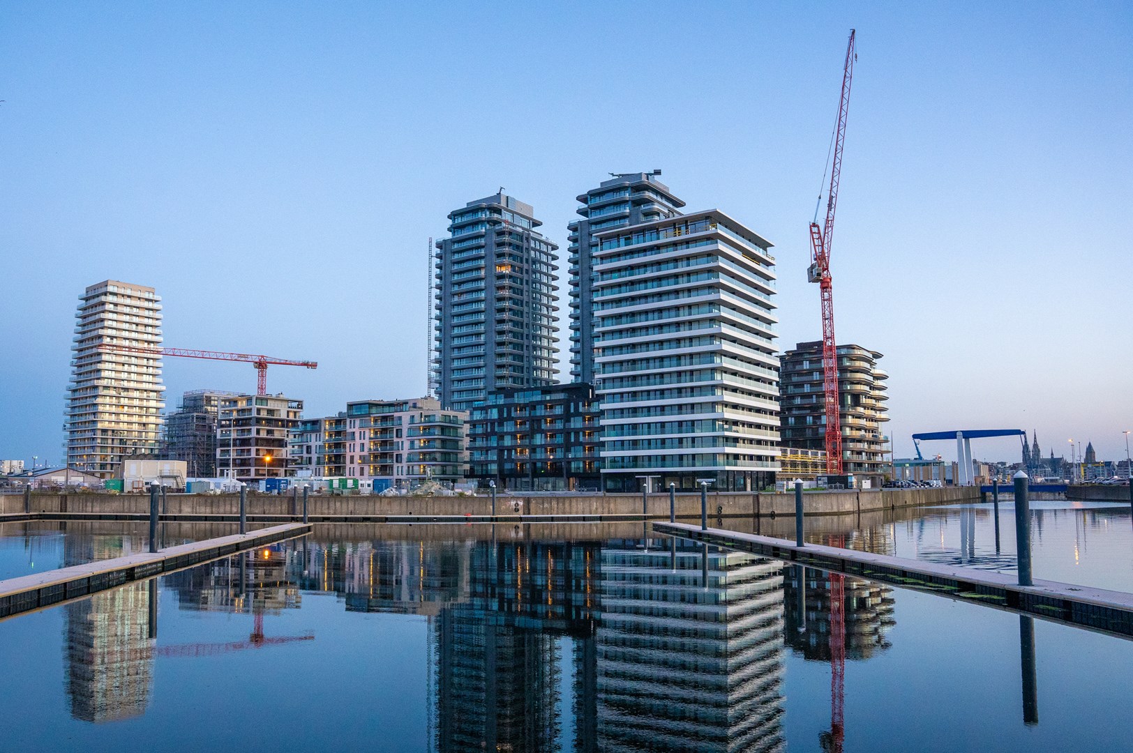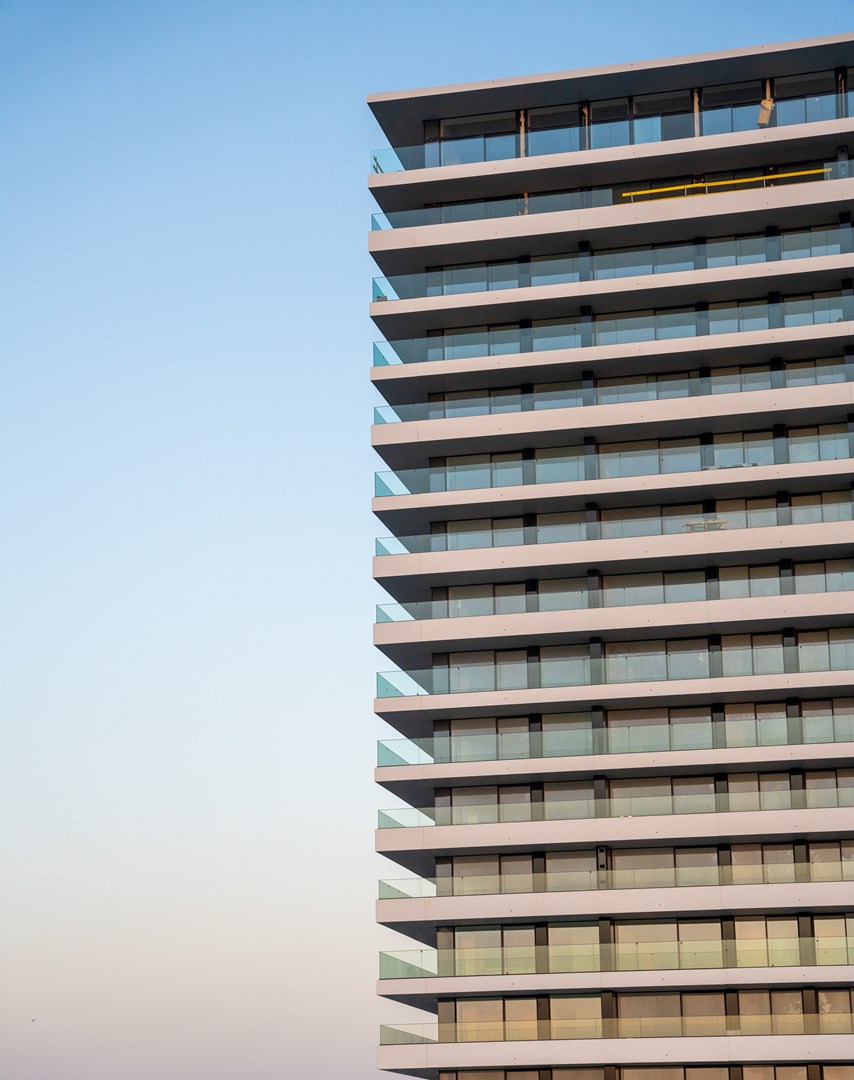 Gelaagde terrassen en spiegelende gevels van voltooide Trinity-toren verlevendigen Oostendse skyline (BINST ARCHITECTS)