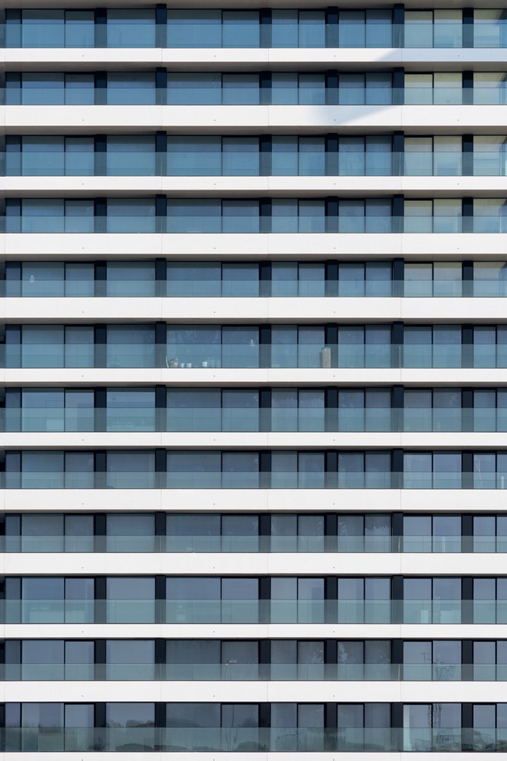 “Met Trinity hebben we gekozen voor een strakke, modernistische benadering die contrasteert met ons eerdere project One Baelskaai, maar toch even sterk als landmark functioneert. Door te spelen met de verschillende bandbreedtes van de balustrades creëren we een visueel ritme dat de gevel grafisch verrijkt, terwijl de zwarte spiegelwanden tussen de appartementen een gelaagdheid en verfijnde privacy bieden”, besluit de architect en zaakvoerder van BINST ARCHITECTS.