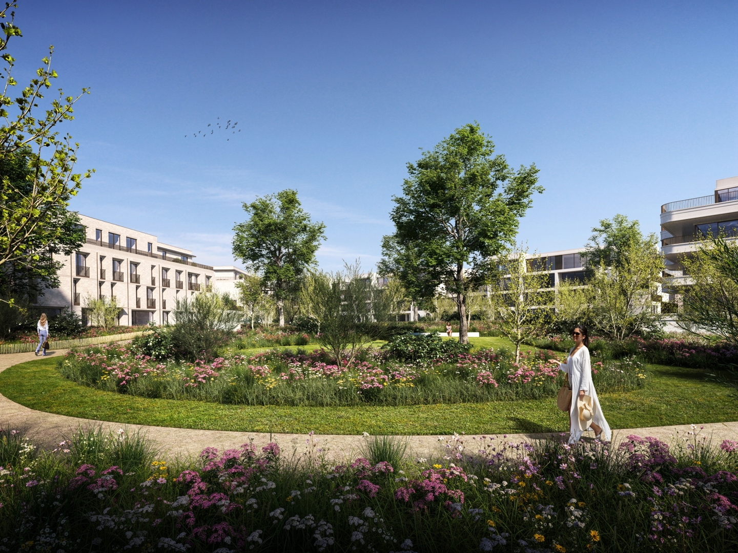 Rondom het park komen vijf woonvolumes met een sterke variatie in schaal en typologie. De drie laagbouwvolumes hebben uitzicht op een private tuin van 6.500 m², wat zorgt voor een meer besloten en intieme woonervaring. Het binnenplein vormt een rustige tegenhanger voor het levendige publieke park. De architecturale aanpak van ARCAS benadrukt rust en eenvoud, en sluit aan bij het streven naar een leefbare stad op mensenmaat. Alle gebouwen worden ontworpen met aandacht voor duurzaamheid, daglicht en kwalitatieve buitenruimte.