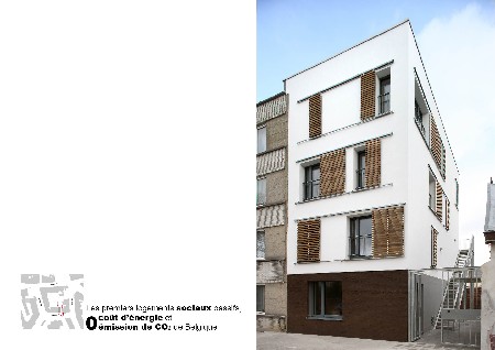 Het behelst de eerste sociale passiefwoningen met nul energie en nul CO2-uitstoot in België. Deze uitdaging is dubbel interessant: enerzijds is er de implementatie van een gebouw in een bepaald stedelijk weefsel, en anderzijds de wil om de prestaties van het gebouw tot het maximum te drijven.
