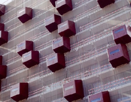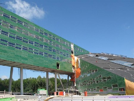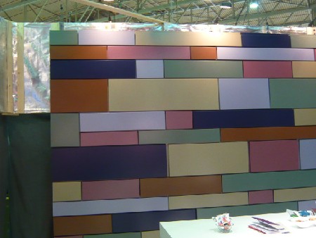 Heel aparte gevelmaterialen zagen we bij Holland Composites. Dit bedrijf maakt composietconstructies op basis van vacuüminjectietechnologie waar men zowel qua kleuren als qua vormen veel kanten uit kan. De architect kan zelf het uiterlijk bepalen wat hij wenst. Zo kregen we onder meer een uitvoering te zien die ontworpen was door Mecanoo.