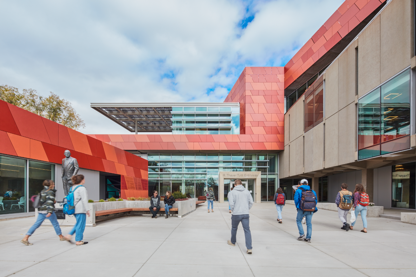 De uitgebreide Tutt Library van Colorado College is de grootste koolstofneutrale academische bibliotheek van Amerika. Mede dankzij de toepassing van rode gevelpanelen van Swisspearl is het iconische gebouw getransformeerd tot een kleurrijke, dynamische faciliteit die voldoet aan alle noden van een hedendaagse bibliotheek en naadloos aansluit bij het unieke academische programma van het college.