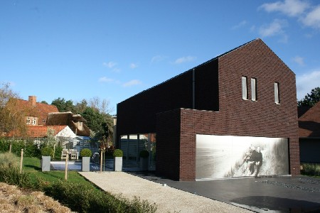 Voor Abet Laminati zijn deze MEG Digital Print-platen de eerste toepassing waarbij een foto wordt aangebracht op een particuliere woning. De producent van de hier verwerkte garagepoort – Hörmann – nomineerde naar aanleiding van een Europese wedstrijd de originele verwerking in dit project tot de tien mooiste van Europa.