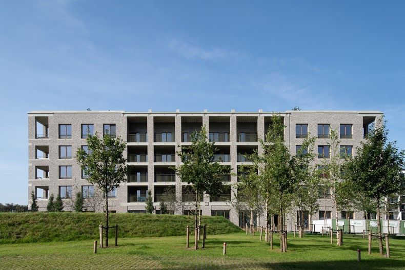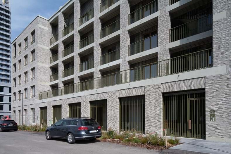 Bakstenen Linea 7036 en 7035, beide geproduceerd volgens de Wasserstrich-methode, zorgen voor een levendige en kleurrijke gevel voor blok 18 in Nieuw Zuid, Antwerpen. De gevelstenen, van steenbakkerij Vande Moortel, zorgen voor een natuurlijke relatie met het omliggende groen en geven blok 18 een massief voorkomen. Het bouwwerk werd in opdracht van Triple Living, uitgewerkt door hama architecten.