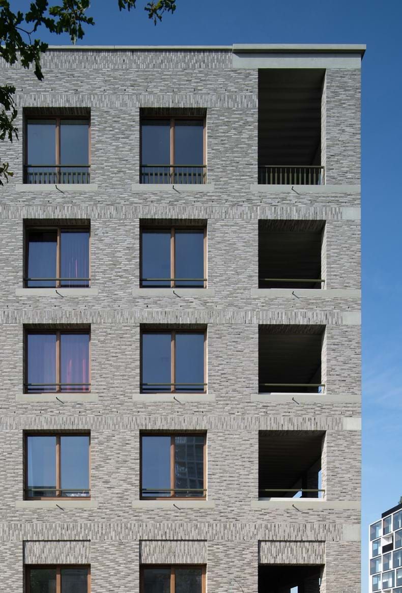 Het vijf verdiepingen tellende gebouw beschikt behalve over wooneenheden, ook over een publieke sokkel met daarin een boksclub en een sapbar. Deze zijn georiënteerd aan het nieuwe, groene plein tussen blok 17 en 18. Door de materialisatie, past het gebouw mooi in deze omgeving. Marco Arts van hama architecten: “We zochten naar een manier om ‘massiviteit’ in het gebouw tot uitdrukking te brengen en keken om die reden naar gevelmaterialen die in hun samenstelling een monoliet en natuurlijk karakter hebben. Dan kom je al vrij vlug bij baksteen uit."