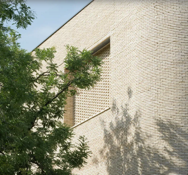 Voor dit project viel de keuze op een handgevormde gevelsteen in een lichte steenkleur, de linea Hand-Made 9001 gevelsteen. De architecten leggen hun keuze uit: “In eerste instantie dachten we aan witte gevelsteen, maar na een aantal proeven en prototypes konden we het gebouw met de steenachtige kleur goed integreren in de buurt, die vooral overheerst wordt door beige-oker tinten.” Deze keuze dient op die manier een aantal doelen: het verenigt de verschillende volumes, biedt een zachte integratie in een wijk met dezelfde tinten en versterkt de duurzaamheid en het belang van openbare voorzieningen.