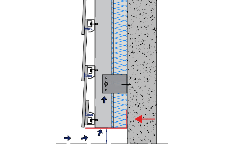 Het is belangrijk dat de luchtkamer op de smalste delen minstens 2 cm breed is om te zorgen voor een gepaste ventilatie. Het wordt trouwens aanbevolen dat de minimale ventilatie-oppervlakte aan de hoogte van het gebouw wordt aangepast. Wat betekent dit op het vlak van energieprestatie? Dankzij de temperatuurverschillen doet zich in deze tussenruimte een natuurlijk convectiefenomeen voor dat “schoorsteeneffect” wordt genoemd.