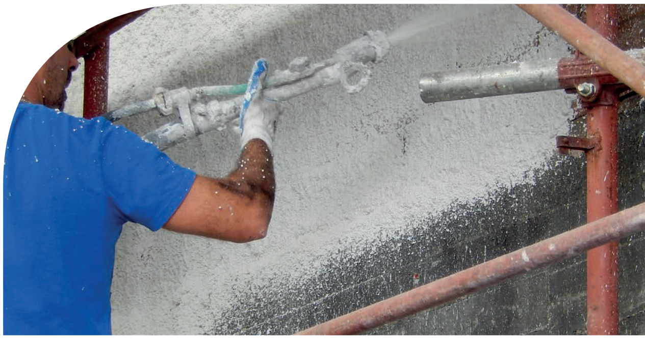 Gewelfplafond in metselwerk beschermd met brandwerende pleister