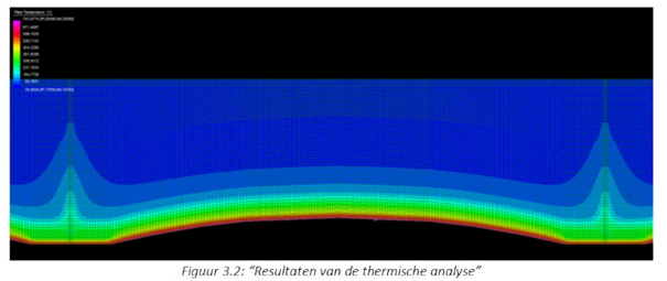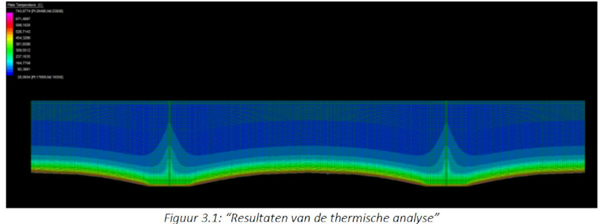 Om die reden werd een thermische analyse uitgevoerd onder niet-lineaire materiaalomstandigheden, met behulp van eindige-elementensoftware.