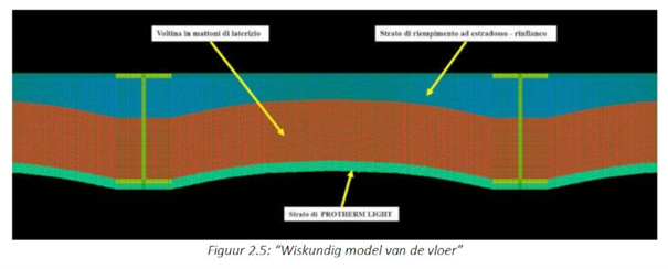 Er wordt uitdrukkelijk op gewezen dat men hier een situatie beschouwt waarbij de vloer beschermd is met 1,5 cm brandwerende pleister PROTHERM LIGHT, aangezien uit eerdere analyses is gebleken dat het ongeïsoleerde gewelfje niet voldeed aan de eisen inzake brandweerstand.