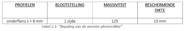 Voor dit specifieke geval en het geïdentificeerde beschermingsproduct toont Tabel 2.1 de benodigde pleisterdikte.