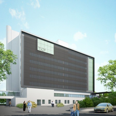 Abscis Architecten stond in voor de verbouwing en renovatie van voormalig ziekenhuis Campus Degust in Ronse tot TIO³, een centrum voor ondernemerschap, opleiding en ontwikkeling met een bijzondere focus op textiel en innovatie. Voor de gevel werd er geopteerd voor een textielgevel bestaande uit een opgespannen gaas uit PVC gecoat polyester weefsel, op een metalen onderconstructie geplaatst. Tapes & Banners uit Dottignes verzorgde de onderstructuur en Sioen uit Ardooie leverde het doek.