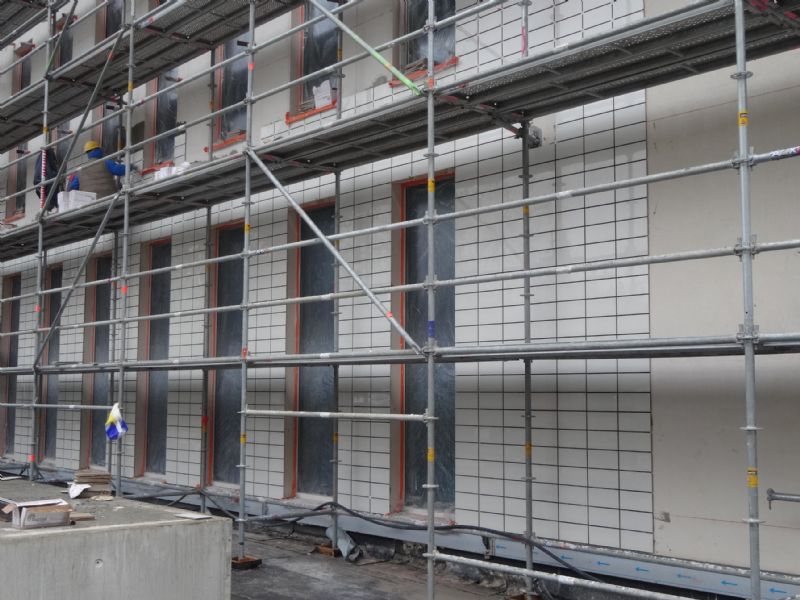 Onderlaag (isolatie en minerale kleefmortel): StoPolystyreenplaat Top 32, StoLevell Uni + StoBaukleber – fabrikant: Sto