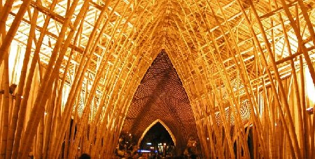 Je krijgt een metalen profiel met een natuurlijk uiterlijk waarvan de ecologische troeven uiteraard hemelsbreed verschillen van die van het ‘echte’ staal. Bamboe wordt ook dikwijls ‘vegetal steel’ genoemd omdat het op min of meer dezelfde manier ontworpen kan worden als ‘traditionele’ metalen portieken of spantenconstructies.