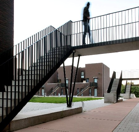Wij hebben prefab zelfverdichtend beton van twee verschillende fabrikanten gebruikt. De eerste fabrikant was Verheyen Betonproducten nv, wiens product wij aanwendden voor de V-kolommen ter ondersteuning van de overkraging van de woontoren, de terrassen die als “doosjes” aan de gevel hangen en de buitentrappen met “bruggetje” voor de inkom van de stapelwoningen. Jumabeton was de tweede fabrikant op wie we een beroep hebben gedaan. Zijn beton gebruikten we voor de buitentrappen naar de kelders en de binnentrappen van de gemeenschappelijke traphallen.