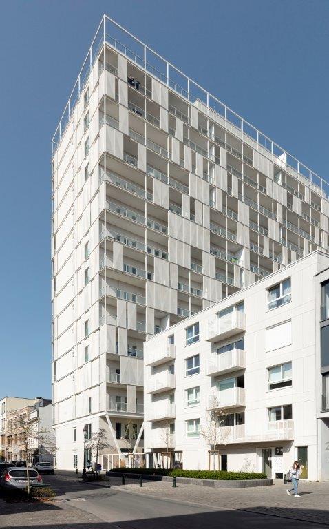 Dat de werf zich in het centrum van de stad bevond, vormde eveneens een pittige uitdaging, benadrukt Stijn Biesemans. “In logistiek opzicht hadden we bijna geen opties. Zo hebben we stevig moeten lobbyen om de werfkeet te kunnen neerpoten op een bestaande parking. Bovendien moesten we maximaal rekening houden met de omwonenden. Om geluidshinder te vermijden, hebben we bijvoorbeeld specifieke akoestische metingen gedaan en een speciale overkapping met dempers over de ventilatieroosters geplaatst die de luchtstroom afbuigt naar de straat. Uiteraard moesten we alle technische voorzieningen in de juiste kleur lakken, zodat het straatbeeld en het geveluitzicht er niet onder lijden."