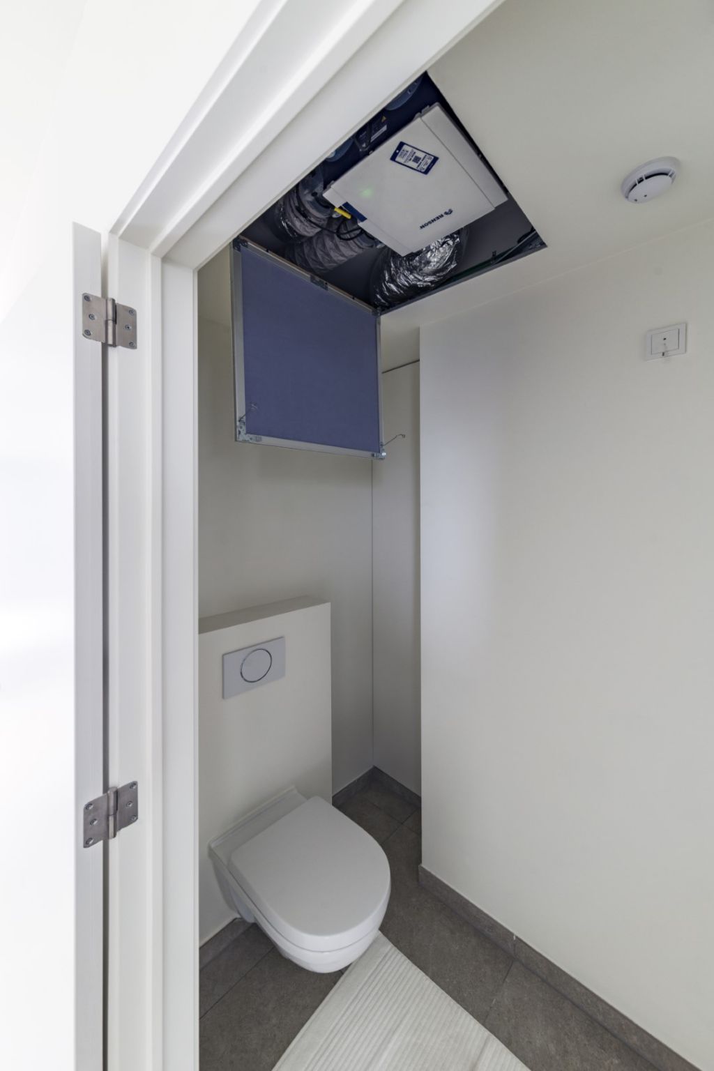 “Maar het grote voordeel van dit C+ ventilatiesysteem is toch vooral dat bewoners er geen omkijken naar hebben,” besluit Christian Lemmens: “Dat dat volautomatisch zorgt voor de best mogelijke binnenluchtkwaliteit, zonder dat ze dat moeten kunnen bedienen. En dat was voor de bouwheer ook een duidelijke voorwaarde voor de andere technieken in dit project: energiezuinig wonen mag niet ten koste gaan van het gebruiksgemak en de woonkwaliteit.”