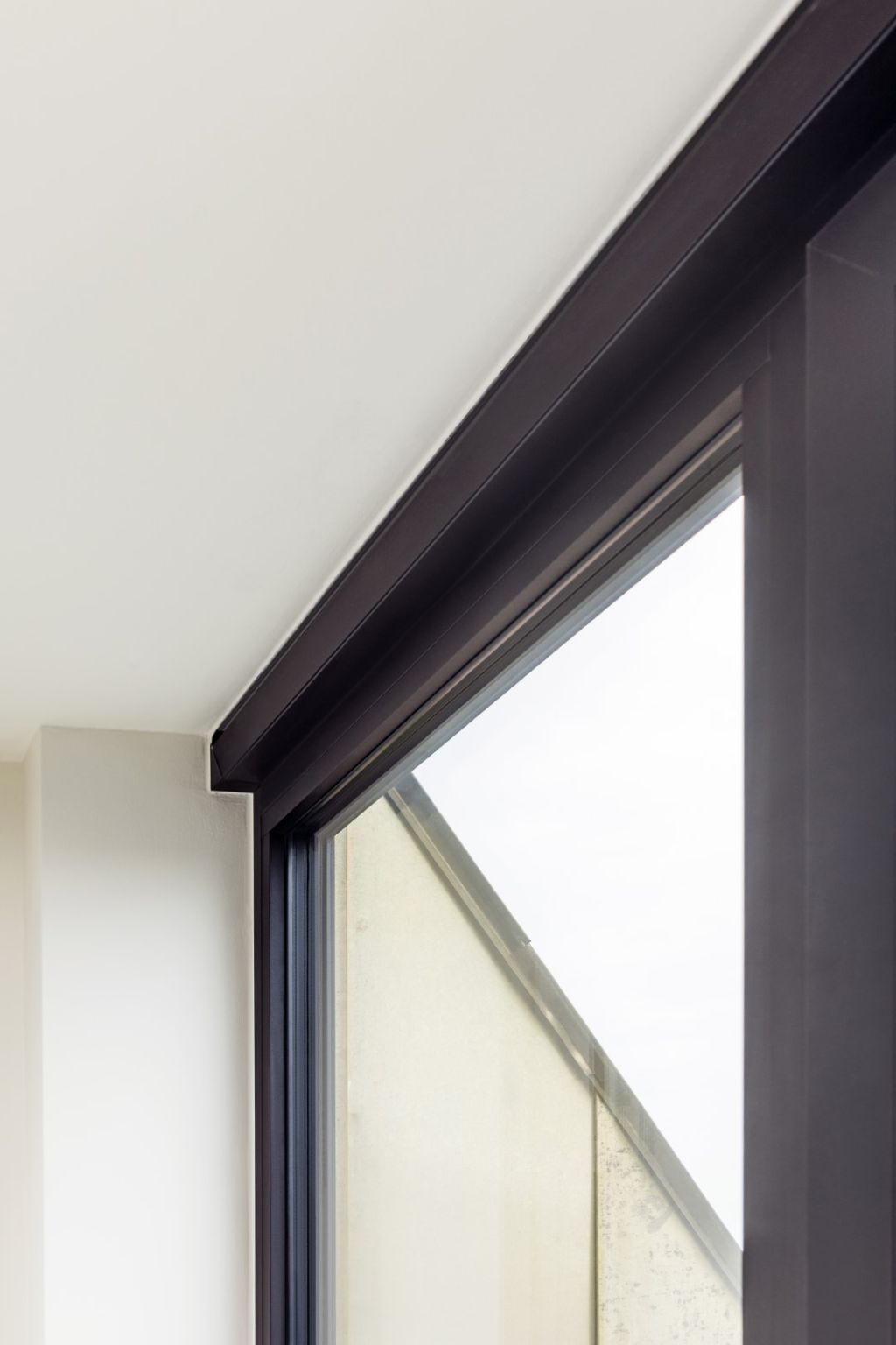 In het ontwerp van het Ursulinenhof waren bepaalde flats voorzien van hoekramen. Uitgewerkt met koude beglazing (hoek op hoek beglazing zonder kolom in de hoek), was de architect specifiek op zoek naar een oplossing om ook hier subtiel buitendoekzonwering te kunnen integreren. Daarvoor kwam die opnieuw bij Renson terecht, dat met de Panovista Max een specifieke hoekzonwering in het assortiment heeft. De rits op de hoek zorgt ervoor dat zelfs met de screens naar beneden het panoramisch uitzicht door de hoekramen optimaal bewaard blijft. Want dat betekent dat er ook geen kabels of zijgeleiders in de weg zitten waar beide screens op de hoek samenkomen.