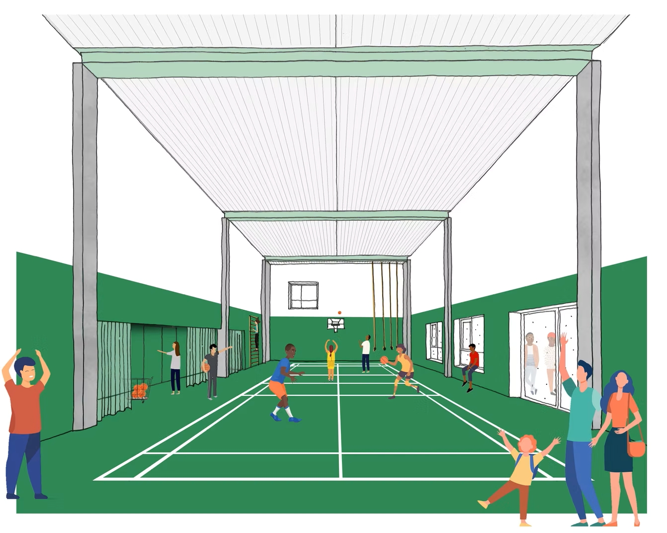 De architecturale flexibiliteit vertaalt zich ook in de relatie met de buurt. Dankzij afzonderlijk toegankelijke delen zoals de sportzaal, refter en forum, wordt de school ook buiten de schooluren een plek voor ontmoeting, sport of buurtwerking. Zo draagt het ontwerp niet alleen bij aan kwalitatief onderwijs, maar ook aan sociale cohesie in de wijk Germinal. Het project slaagt erin om compactheid, geborgenheid en openheid op een evenwichtige manier te combineren.