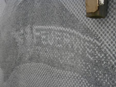Dit papier mag ook niet vouwen, dus maakte Decomo een vacuümtafel ter grootte van de elementen oftewel van 625 op 275 centimeter. Wat anders een blinde muur zou zijn, werd dankzij deze behandeling een fraaie gevel die communiceert met zijn omgeving.