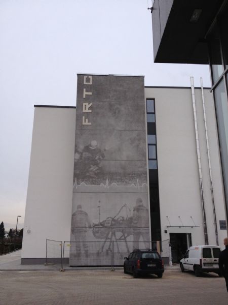 In Frankfurt am Main kreeg de nieuwe brandweerkazerne een kopgevel in grafisch beton. Dankzij Decomo, producent van architectonisch beton, werd een foto over de volledige hoogte van het gebouw ‘gezeefdrukt’. Voor deze realisatie ging het bedrijf een samenwerking aan met Kreetec.