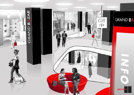 Grand Bazar Antwerp bevindt zich in een omvangrijk historisch pand (1885) op een historische plek in hartje Antwerpen, nabij de Groenplaats en de Eiermarkt. Dit in oorsprong luxueuze en voor de 19e eeuw vernieuwend concept van een warenhuis, leek tot op vandaag vergane glorie. Het concept van BURO II & ARCHI+I veruitwendigt de schaal van het shoppingcentrum, dat een van de grootste is van de Antwerpse binnenstad, en schept orde en homogeniteit in de onoverzichtelijke chaos. Een uniforme en stijlvolle totaalvisie concentreert zich rond branding & look, externe zichtbaarheid, architectuur en een vloeiende interne circulatie.