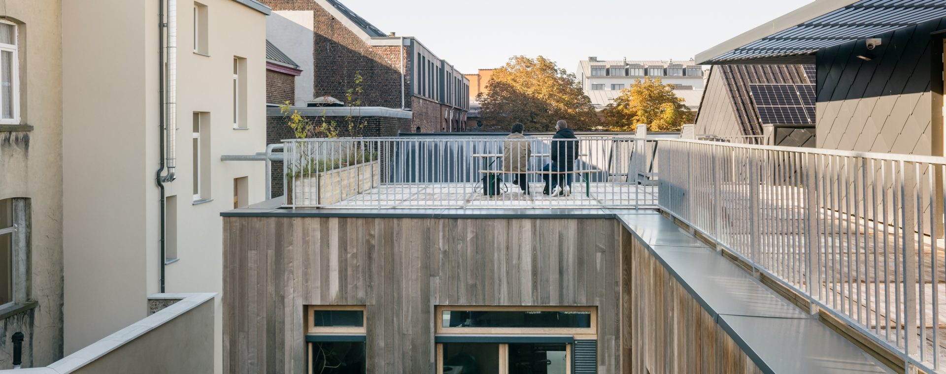 Die natuurlijke koeling wordt ondersteund door een eenvoudig monitoringsysteem dat ramen automatisch laat openen en sluiten op basis van binnen- en buitentemperatuur, wind en CO₂-niveau. Zo blijft de luchtkwaliteit op peil en wordt oververhitting beperkt, met slechts een bescheiden technologische ingreep. Precies die mix van sufficiëntie, gedifferentieerde klimaten en slimme, lichte sturing verklaart de award: het Greenpeace-hoofdkantoor toont hoe een low-tech renovatie kan uitmonden in een hoogwaardig binnenklimaat dat meebeweegt met gebruik, seizoenen en stedelijke context.
