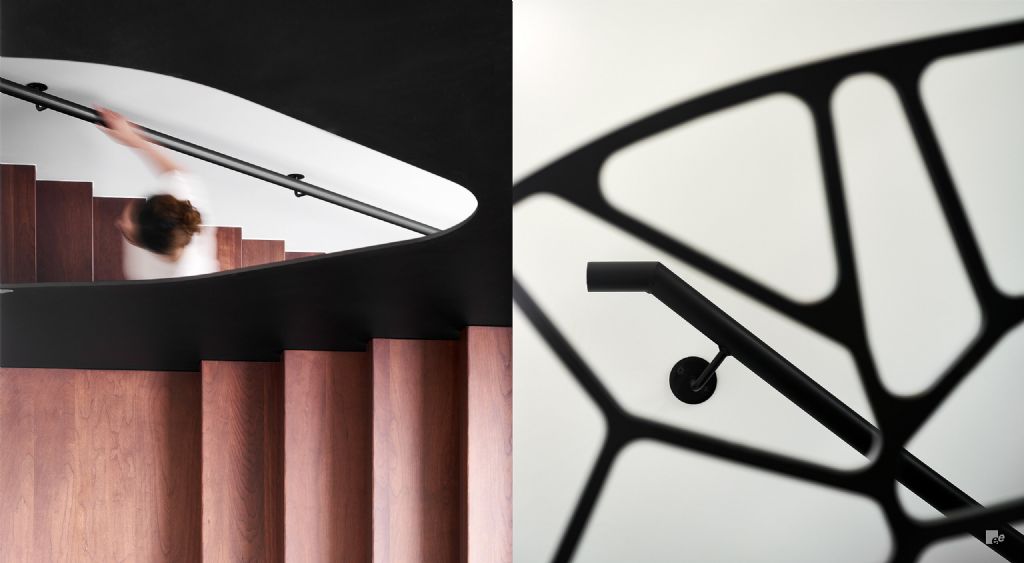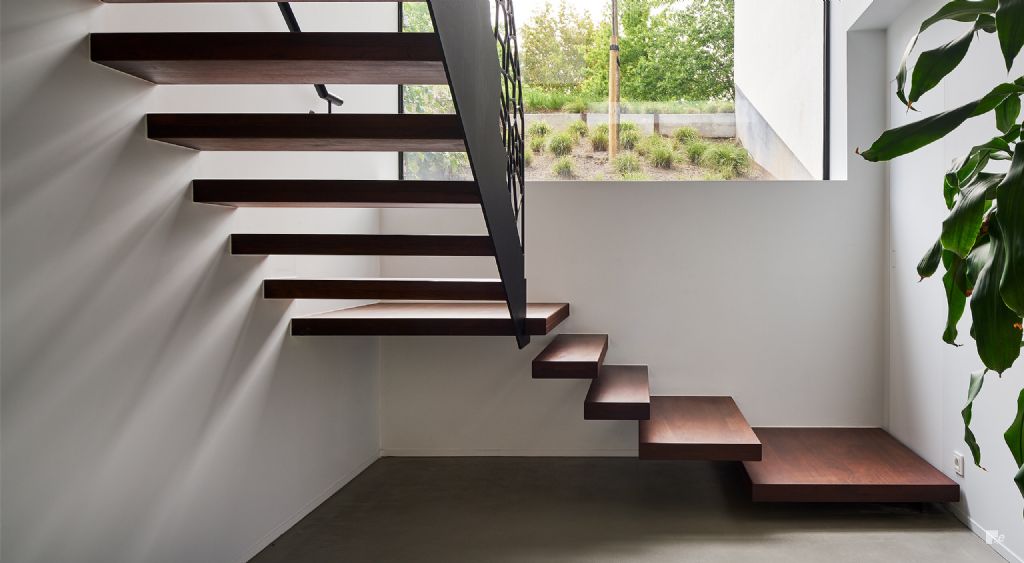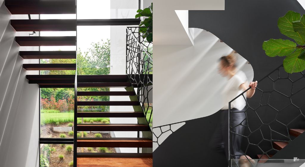 Een uitdaging was om zo veel mogelijk natuurlijk licht door de trap heen laten komen. Een idee was om open houten treden en stalen balustrades te gebruiken. Dit liep over in het gebruik van het unieke open weefpatroon Cells® van EeStairs. Een ander detail dat zorgvuldig werd uitgevoerd was om ervoor te zorgen dat het Amerikaanse kersenhout van de trap geolied werd om zo te passen bij de kleurtinten van de walnotenhouten meubels van het huis.